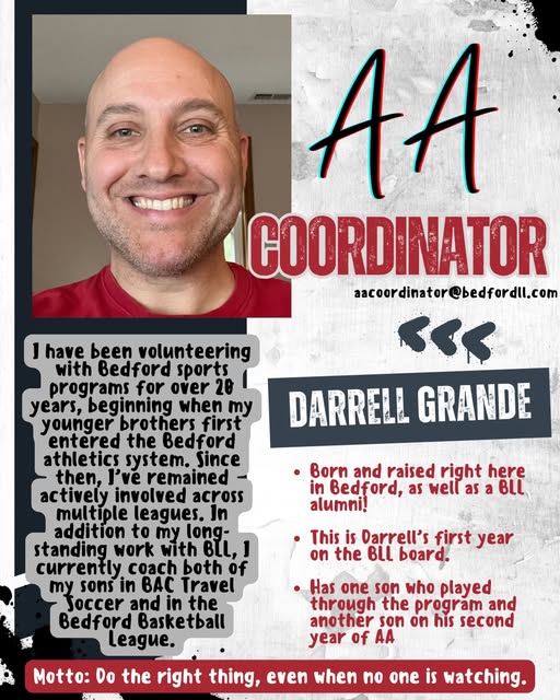 Born and raised right here in Bedford, Darrell Grande is our new AA Division Coordinator β and honestly, it just makes sense.